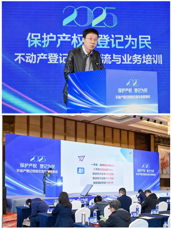 我局调查登记处处长蔡冠青具体从“数据底座、业务规范、数据安全”三大核心,系统阐述了我市不动产登记数字化转型的实践路径,从一手房分户转移登记和抵押登记全程网办率超90%,二手房无纸化率超70%,到推行“云窗口”模式,实现跨国可办不动产登记业务;从开展“智能辅助审核”创新,压缩时限减少人工审核裁量权,到建立“动态质量检查”机制,形成风险防控闭环,保障登记安全等。生动展示了厦门在优化营商环境、提升服务效能与保障登记安全方面取得的显著成效,为全国同行提供了有益参考。