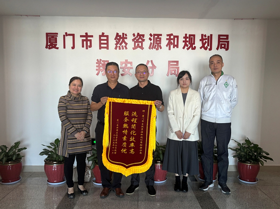 近日,翔安分局收到厦门南洋酒店投资有限公司赠送的“流程简化效率高、服务热情素质优”锦旗,对分局在办理会展酒店项目规划条件核实与土地核验“一证多验”过程中的专业指导及热情服务表示衷心感谢。