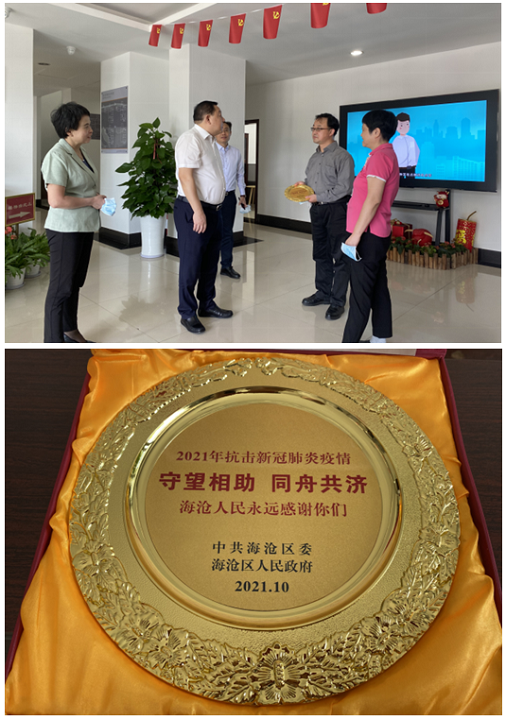 10月26日上午,海沧台商投资区管委会主任、海沧区代区长龚建阳一行走访数字中心,市资源规划局二级巡视员代敏、数字中心主任张晓宏及相关人员迎接访问。龚建阳主任对数字中心在9月份厦门疫情期间抽调志愿者支援海沧疫情防控,并协助开发设计《海沧区疫情相关人员信息运行系统》,全程参与系统运行和管理等任务表示感谢,并带来“守望相助 同舟共济”感谢牌,希望数字中心持续发挥专业及平台优势,依托大数据信息技术,更好地服务行业管理和社会治理。