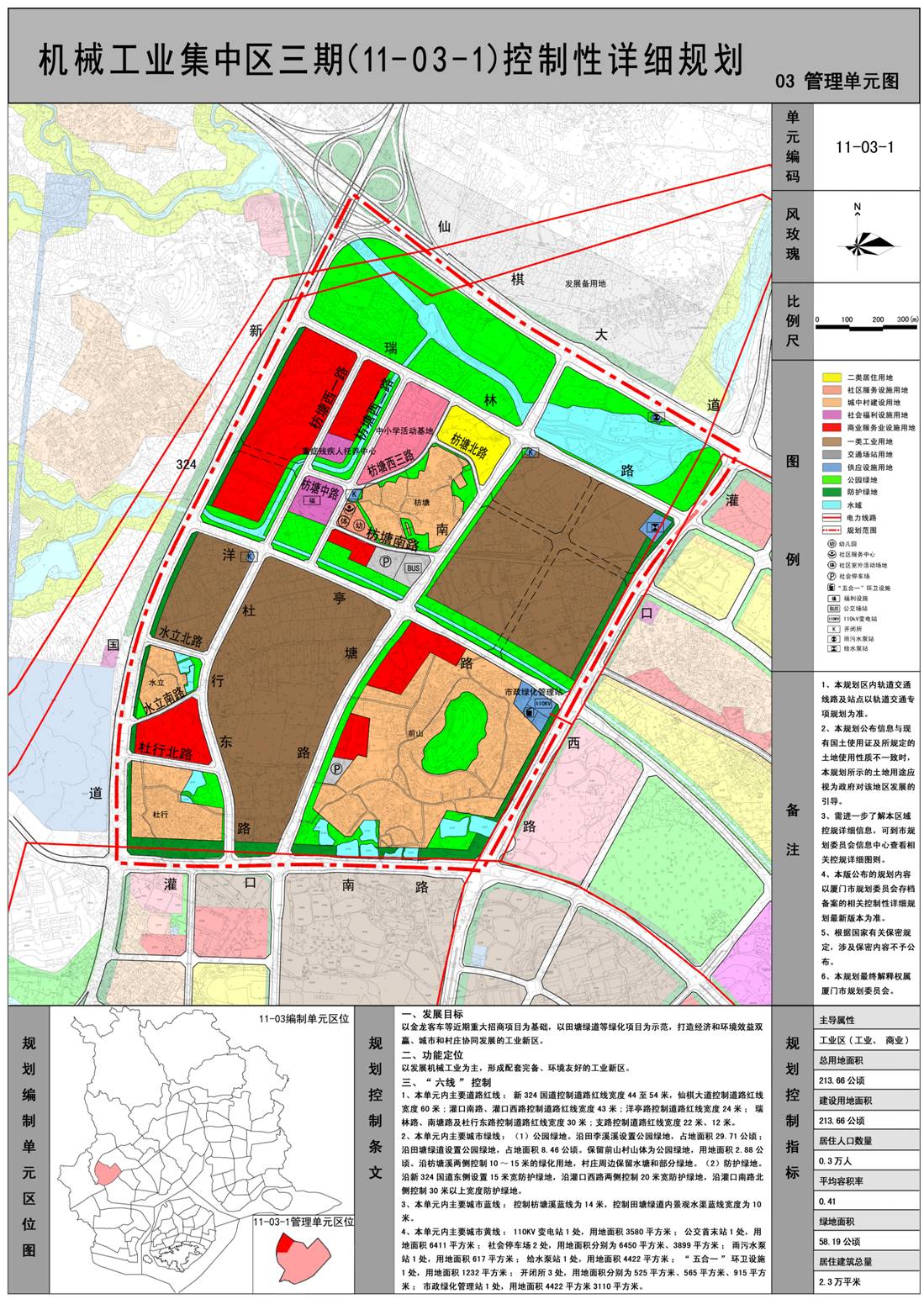 根据《中华人民共和国城乡规划法》等相关规定,厦门市规划委员会组织编制了《机械工业集中区三期(11-03-1)控制性详细规划》,现依法将该控规予以公布。