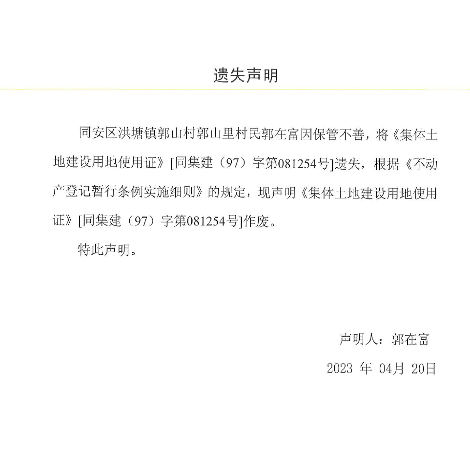 遗失声明(郭在富)