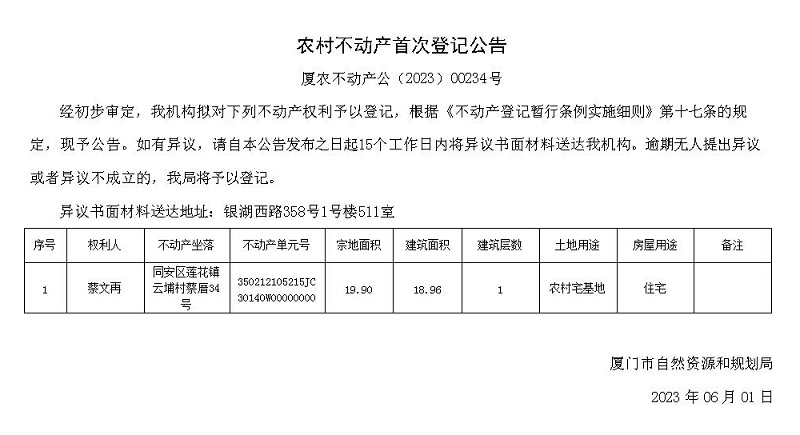 厦农不动产公(2023)00234号